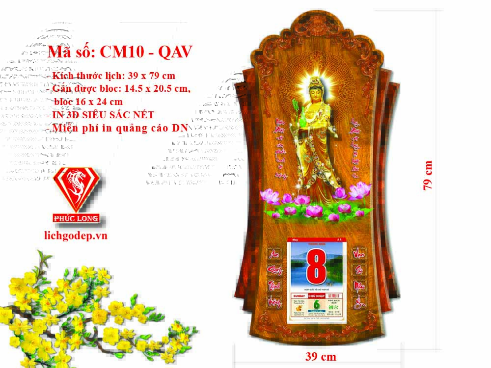 - Gắn được Bloc lịch: 14,5 x 20,5cm hoặc16 x 24cm