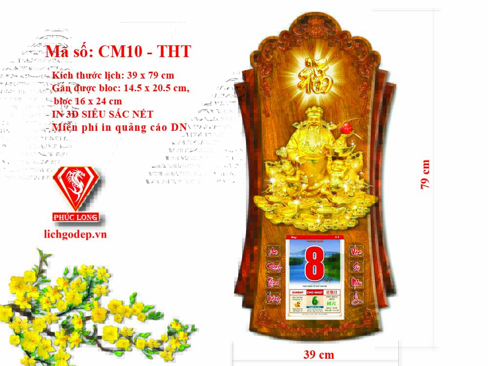 - Gắn được Bloc lịch: 14,5 x 20,5cm hoặc16 x 24cm