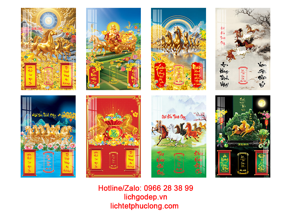 Lịch gỗ Laminate Mã Đáo Thành Công mô phỏng hình ảnh 8 tuấn Mã phi nước đại. Mỗi chú ngựa đều có vẻ uy nghi, hùng dũng riêng.